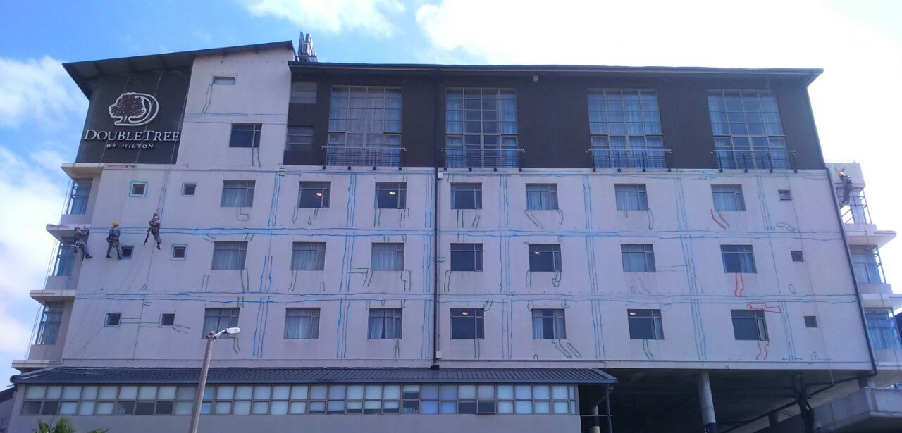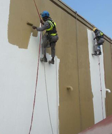 Our trained technicians are equipped to apply acrylic, epoxy and specialty coatings as per all major coating suppliers in Southern Africa. The only difference between rope access and traditional forms of access is the reduced time frames in which hard to reach areas can be completed.