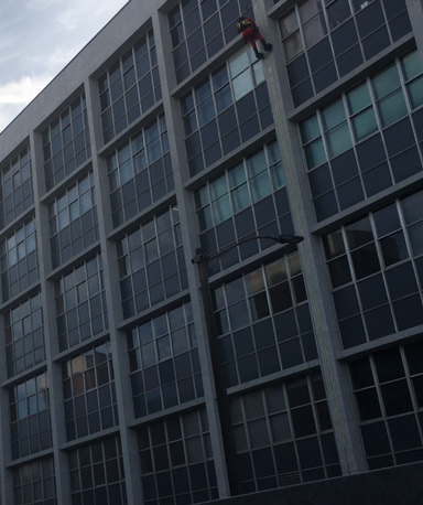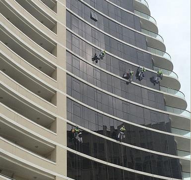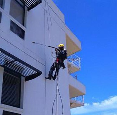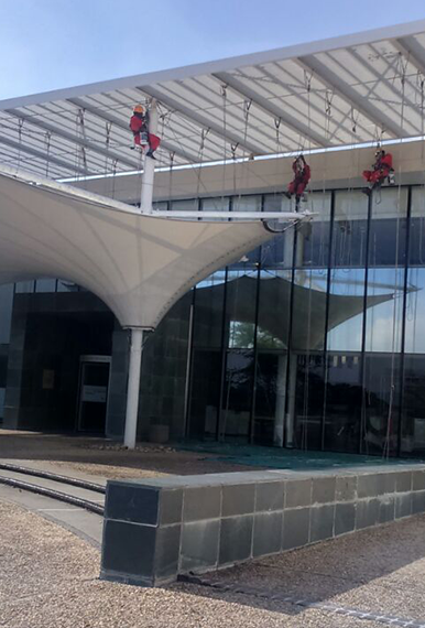 Rope access is ideal for high access cleaning as it reduces the cost for traditional forms of access.
